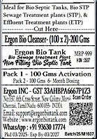 Ergon Bacterial Enzymes 100 x 2 Packs Anaerobic Process in Delay Time Eco Friendly No SMELL CLEAR WATER